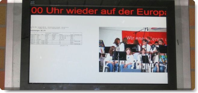 Das sb-edv Infosystem, mittlerweile an einigen Schulen im Rhein-Sieg-Kreis installiert, informiert Schülerinnen und Schüler nicht nur über Stundenplanänderungen und Vertretungspläne, auch Veranstaltungshinweise sowie Fotoserien und Videos über das Schulgeschehen oder andere Ereignisse halten alle Anwesenden auf dem Laufenden.